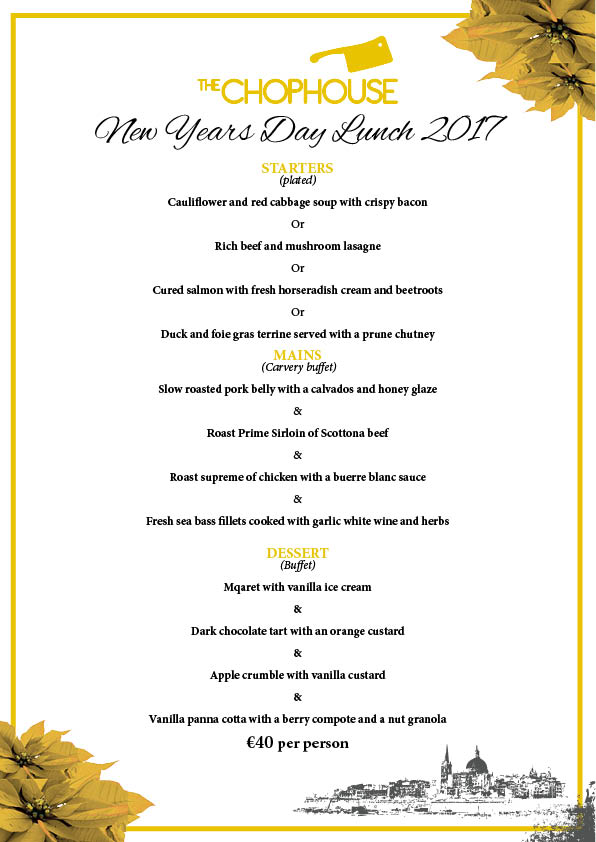 Join us at the Chophouse for New Year’s Day Lunch, book to avoid any disappointment on [email protected]