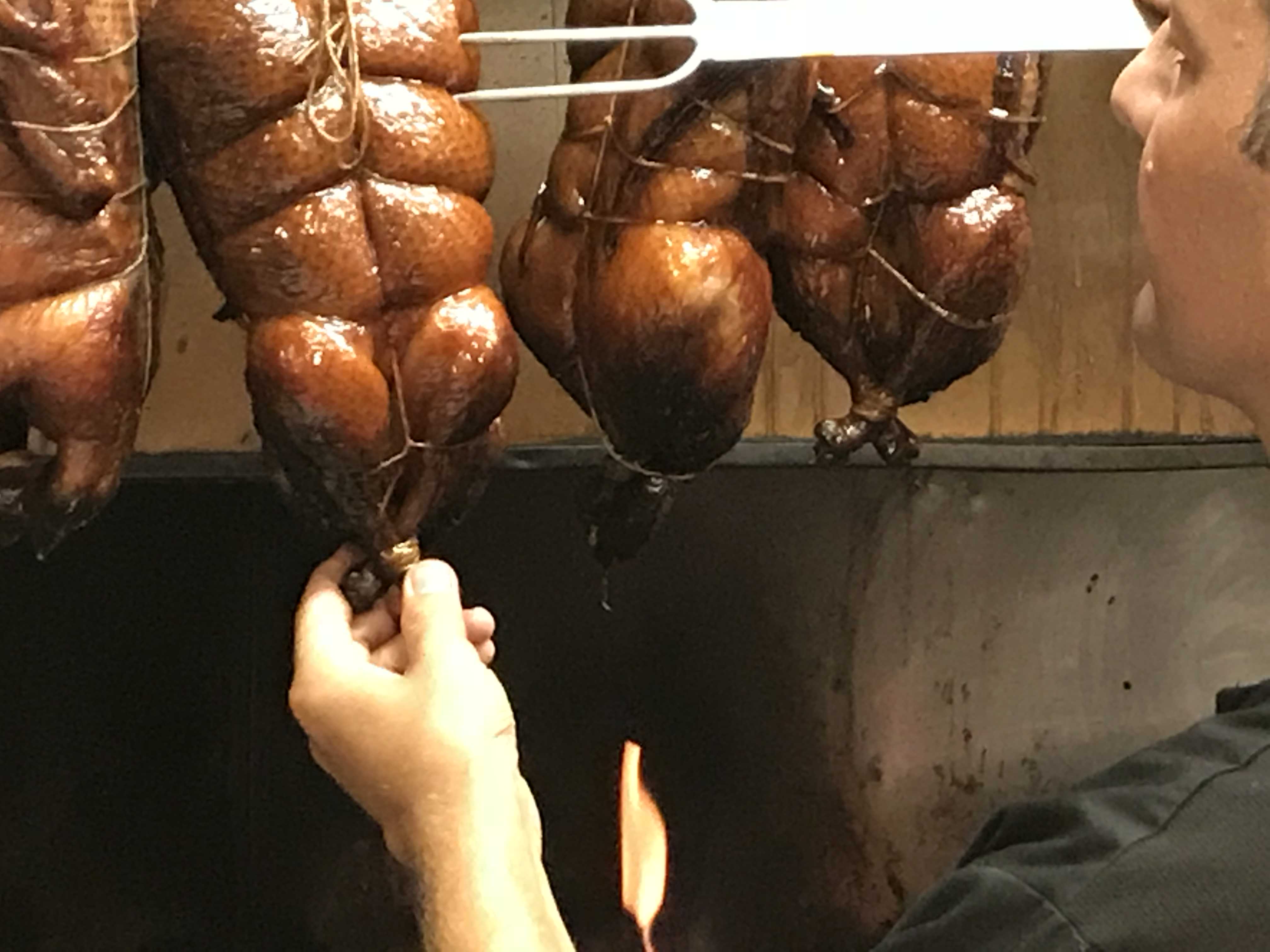 The Chophouse Duck takes just under 24 hours to reach your plate -12 hours cured in salt; 3 hours apple wood–smoked; 6 hours hung over hot embers for the perfect slow cook; glazed with a smoked chipotle and carob syrup; chopped and plated.